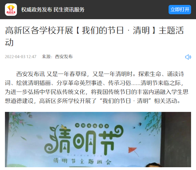 高新区各学校开展【我们的节日·清明】主题活动