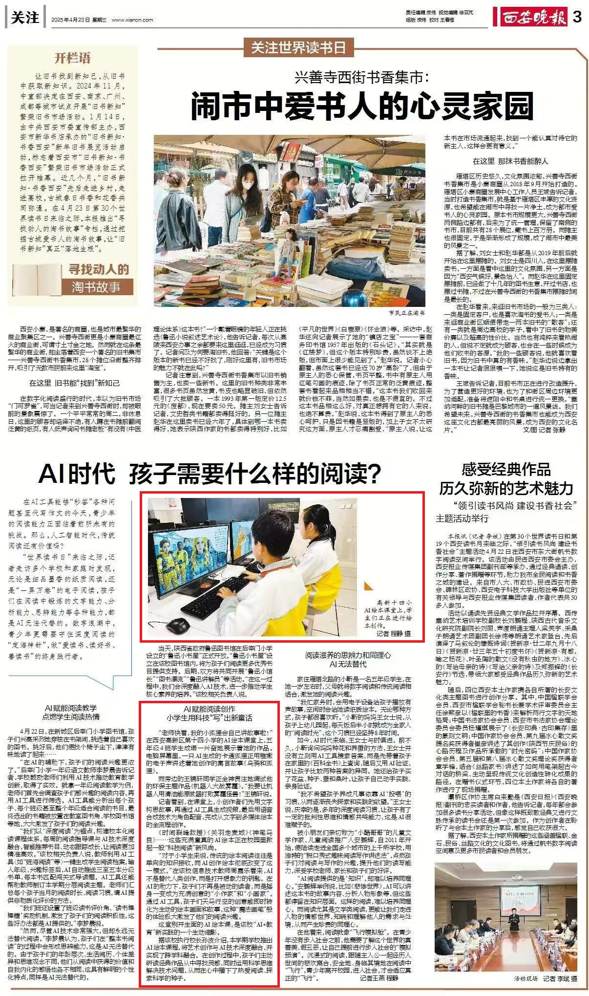 《时间裂缝救援》《关羽走麦城》《神笔马良》……这些充满童真的AI绘本正在校园里掀起一股“科技阅读”新风尚。